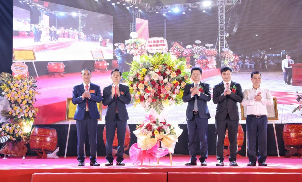 Lãnh đạo tỉnh Vĩnh Phúc tặng hoa chúc mừng thị trấn Tam Hồng