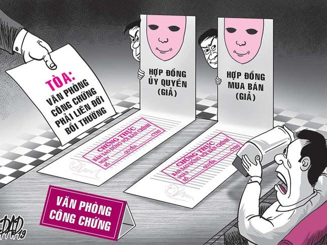 Do công chứng hợp đồng ủy quyền, hợp đồng mua bán nhà, đất có yếu tố giả người và giả giấy, văn phòng công chứng đã bị tòa án buộc liên đới bồi thường.