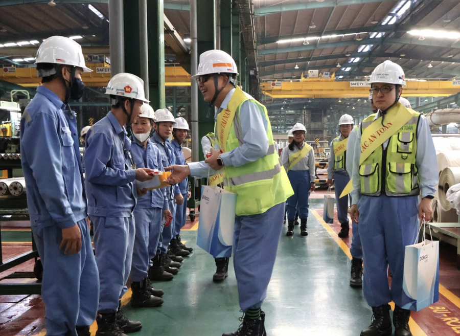 Công nhân được công ty thưởng vì đạt mục tiêu 2.000 ngày không xảy ra tai nạn