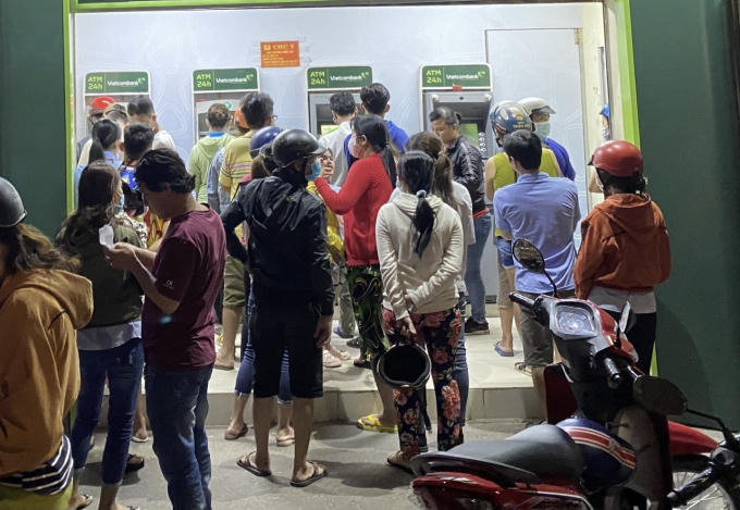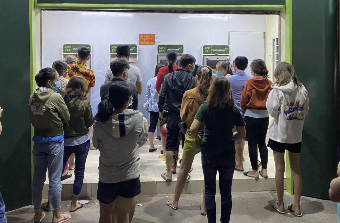 Công nhân khổ sở xếp hàng dài chờ nhận lương tại cây ATM