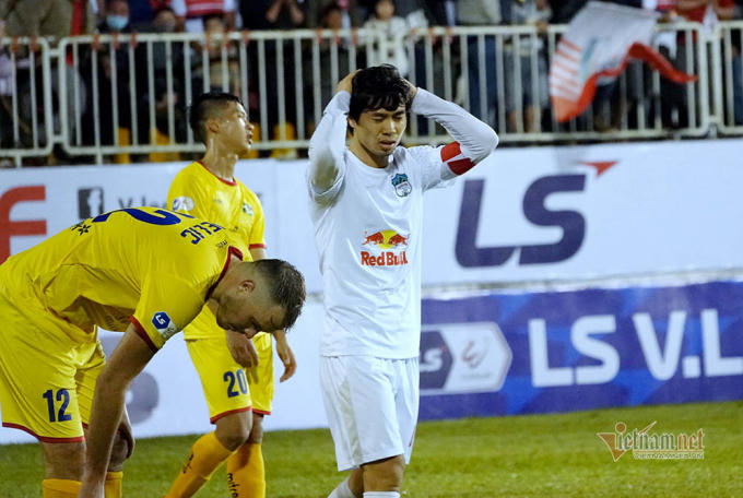 Hoặc như ở chiến thắng nhọc nhằn trước SLNA vừa qua, Công Phượng cũng làm người xem phải tiếc rẻ với 2 tình huống xử lý kỹ thuật và dứt điểm hiểm hóc nhưng rốt cuộc lại dội cột dọc hoặc đi chệch khung thành trong gang tấc.