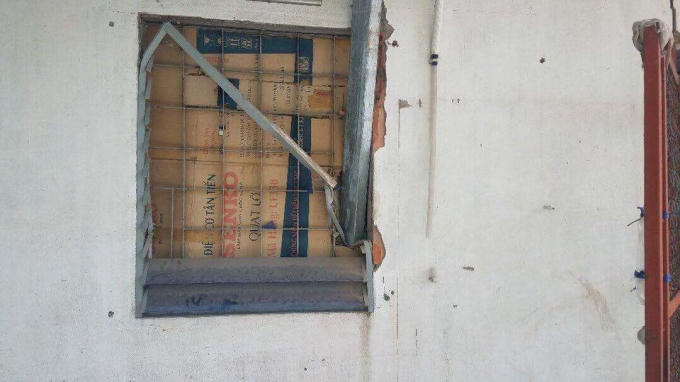 Khi chị D thức dậy bật điện kiểm tra thì phát hiện mái tông của căn phòng bị thủng do bê tông của công trình đang xây dựng kế bên rơi trúng. Được biết công trình trên thuộc dự án xây dựng căn hộ cao cấp Opal Garden do tập đoàn Đất Xanh làm chủ đầu tư.
