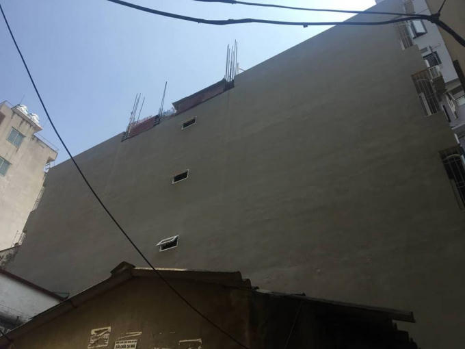 Cụ thể: Công trình đã xây dựng hết diện tích đất. Công trình đã xây dựng lên tới tầng 4 và có tầng lửng. Kèm theo đó là nhiều cọc sắt chờ.