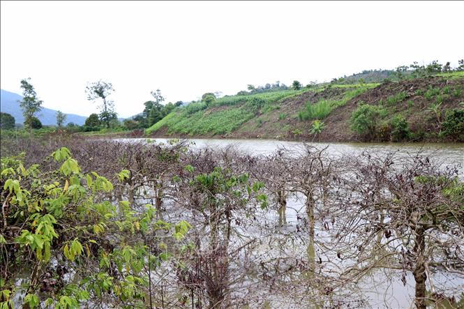 Cà phê chết dần do ngập úng kéo dài sau khi thủy điện Chư Pông Krông tích nước. Ảnh: Hưng Thịnh/TTXVN