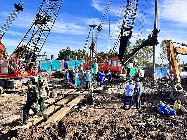 Hình ảnh lực lượng cứu hộ đang nỗ lực tiến hành các biện pháp trong vụ bé trai lọt trụ bê trông ở Đồng Tháp.
