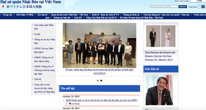 Ảnh chụp màn hình Trang web chính thức của Đại sứ quán Nhật Bản tại Việt Nam.