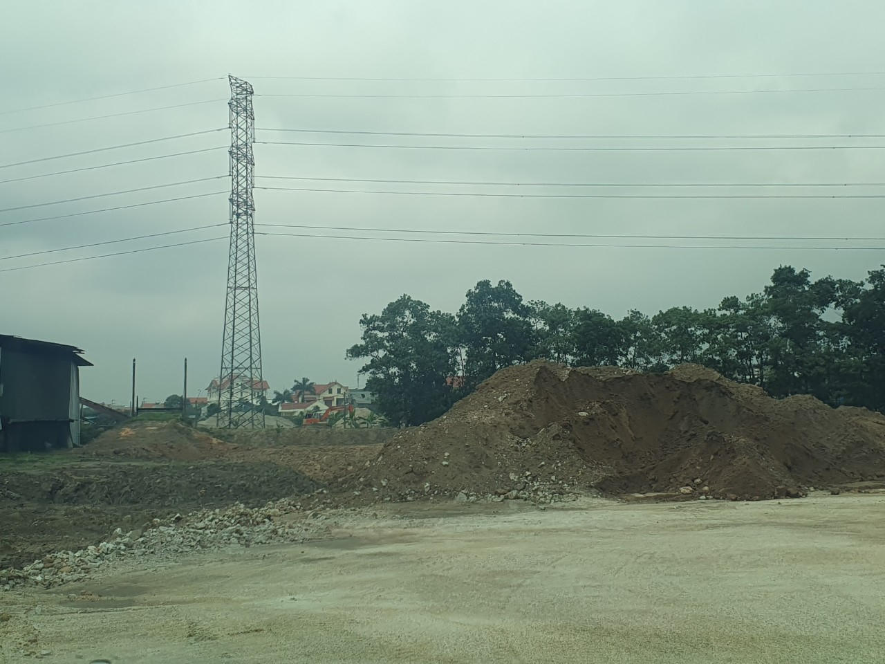 Đất phía bao quanh bãi vật liệu giáp với đường điện cao thế cũng được múc lên chất cao thành đống.