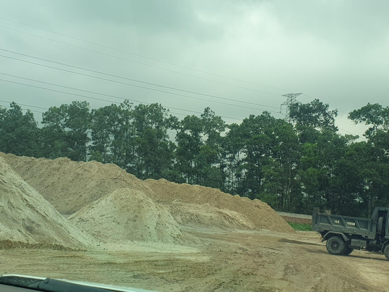 Theo ghi nhận, nhiều đống cát được chất cao, các xe tải thường xuyên ra vào "ăn" cát, "ăn" đất rồi chở đi nơi khác che chắn sơ sài khiến cho cát, đất vương vãi khắp nơi.