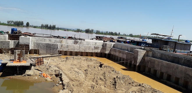 Thế nhưng khi triển khai dự án, Cty Hồng Cường đã tự ý cắm cọc bê tông, đổ cát, lấn chiếm dòng chảy sông Mã cả nghìn mét vuông đất. Việc lấn chiếm ảnh hưởng rất lớn tới dòng chảy mỗi khi thủy triều lên, cũng như việc đi lại của tàu thuyền. Hiện tại các hạng mục đã thi công như giằng thép, cọc bê tông đều đang án ngữ dòng chảy sông Mã.