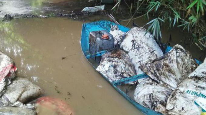 Bức hình được cho là ghi lại cảnh thuyền chở dầu phế thải trên suối Trâm (xã Phú Minh, huyện Kỳ Sơn, Hòa Bình) ngày 9/10