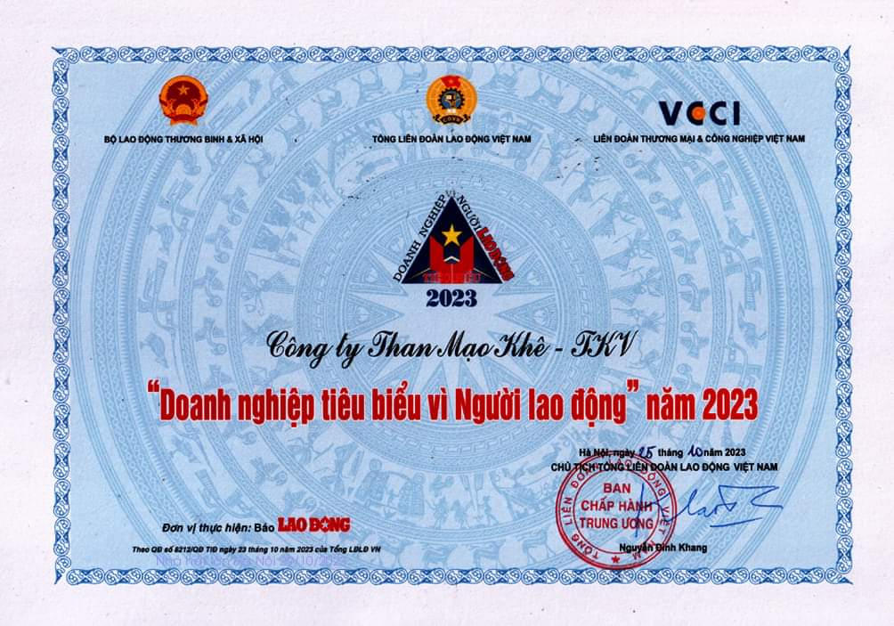 Trong năm 2023, Công ty than Mạo Khê đã được vinh danh “Doanh nghiệp tiêu biểu vì người lao động năm 2023”, chương trình do Tổng Liên đoàn Lao động Việt Nam chủ trì, phối hợp Bộ Lao động - Thương binh và Xã hội, Liên đoàn Thương mại và Công nghiệp Việt Nam tổ chức.
