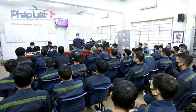 Trước khi nhận việc, Quản đốc phân xưởng nhắc nhở CBCNV chú ý công tác an toàn và những phần việc cần thực hiện trong ca sản xuất.