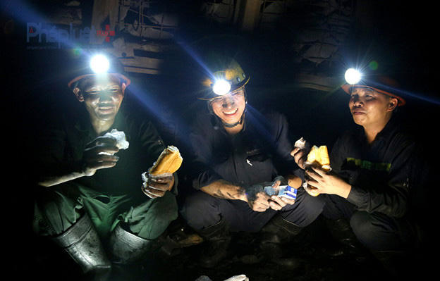 Giữa ca sản xuất, thợ mỏ được ăn bồi dưỡng với bánh mì và sữa.