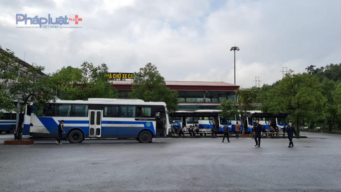Thợ mỏ được đưa đón vào khai trường bằng xe ca.