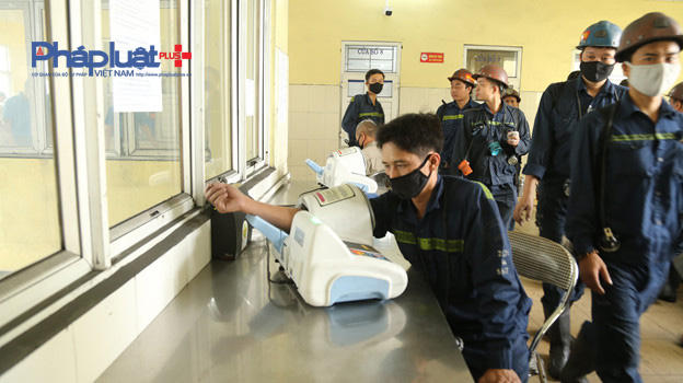 Thợ mỏ tự kiểm tra sức khỏe trước khi vào lò làm việc.