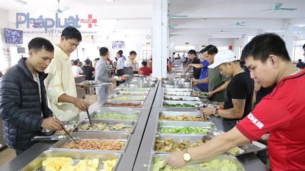 Sau ca sản xuất thợ mỏ được ăn bồi dưỡng tự chọn tại nhà ăn khai trường.