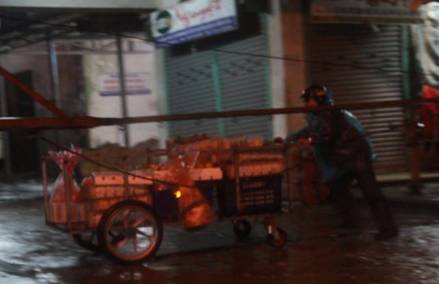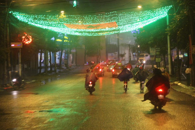 Khác với vẻ nhộn nhịp đón năm mới như nhiều địa phương khác trong nước, tỉnh Quảng Trị chào đón năm mới với khí hậu lạnh, mưa tầm tã. Chính vì vậy, dù mới 21h nhưng các tuyến phố trở nên vắng vẻ lạ thường. Tuy nhiên, ở đâu đó người ta vẫn dễ dàng nhìn thấy những con người bình dị rảo bước mưu sinh giữa trời mưa