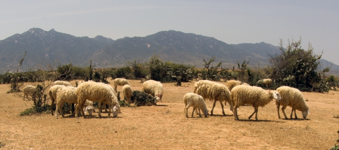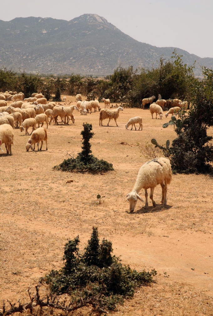 Bỏ nghề trồng trọt, một số người Phước Minh chỉ còn dựa vào chăn nuôi cừu. Không có lúa thì nguồn rơm nuôi cừu cũng cạn kiệt. Những bãi cỏ mênh mông rồi cũng trơ ra đất đá vì cỏ cũng không kịp mọc trước hàng trăm con cừu ngày ngày qua lại kiếm ăn. Trụ lại trên vùng “đất chết” này chỉ còn mỗi xương rồng cùng vài loại cây lá thấp khác.Thám hiểm nơi đất cằn này chúng tôi gặp nhiều đàn cừu được lùa trên đường đất, kiếm ăn trong những bụi cây thấp nhỏ. Những cây sanh dại do cừu gặm lá ngày náy qua ngày khác đã trở thành những hình hài sinh động. Các chú cừu vô tư đã chứng tỏ mình rất có năng khiếu tạo hình bonsai trong các tác phẩm nghệ thuật có một không hai đầy chất lãng mạn.