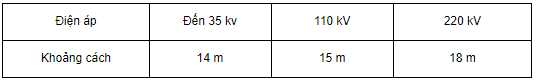 d) Khoảng cách từ điểm thấp nhất của dây dẫn điện ở trạng thái võng cực đại đến mặt đất không nhỏ hơn quy định trong bảng sau: