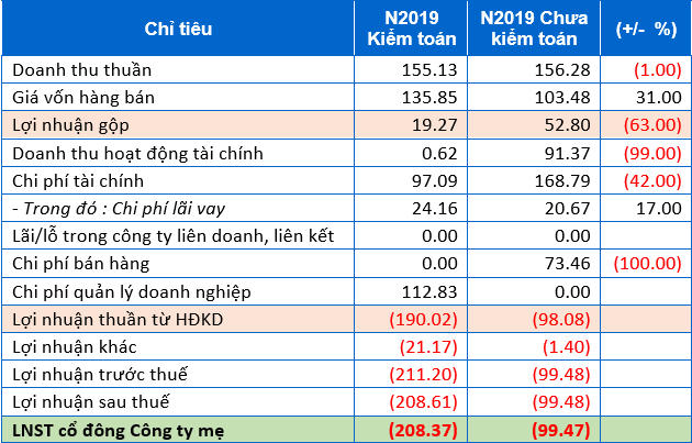 Khoản lỗ mà Cotec Land ghi nhận trong năm 2019 là 208 tỷ đồng. Thực tế, con số này tăng mạnh so với kết quả trên báo cáo tự lập của công ty (trước kiểm toán báo lỗ 99 tỷ đồng).