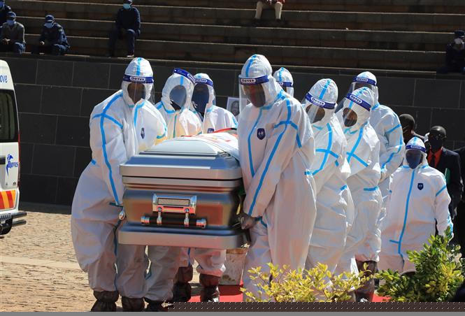Đám tang một bệnh nhân tử vong vì COVID-19 tại Harare, Zimbabwe. Ảnh: THX/TTXVN