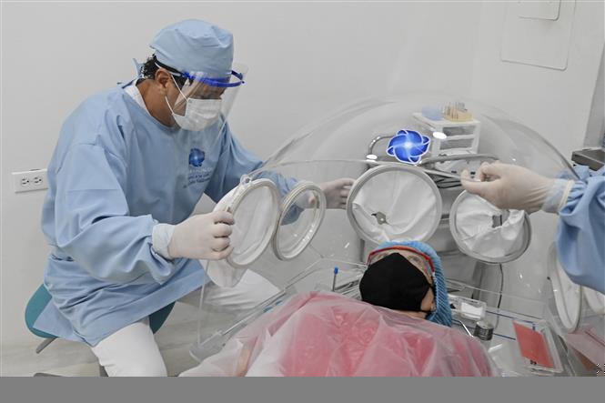 Điều trị cho bệnh nhân nhiễm COVID-19 tại Cali, Colombia, ngày 3/8/2020. Ảnh: AFP/TTXVN