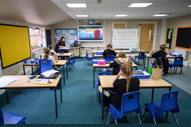 Bên trong một lớp học ở Oldham, Anh ngày 18/6/2020. Ảnh: AFP/TTXVN