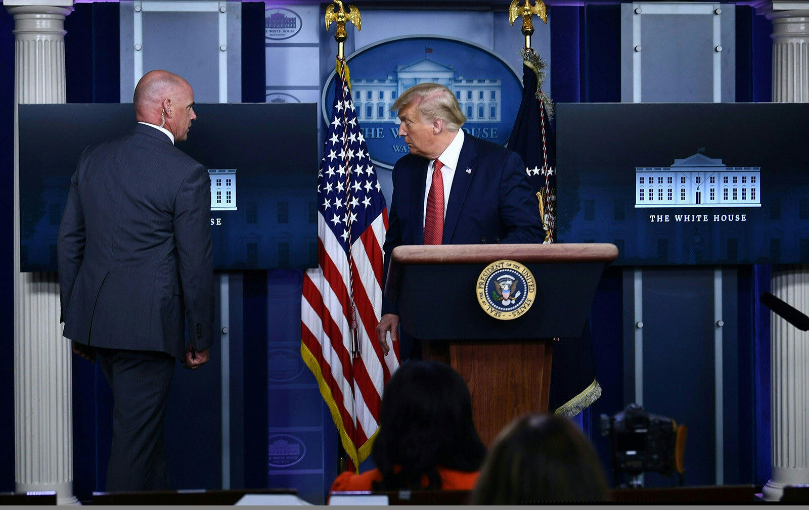 Tổng thống Trump được thông báo về vụ nổ súng khi đang họp báo ngày 10/8 (theo giờ địa phương). Ảnh: CNN