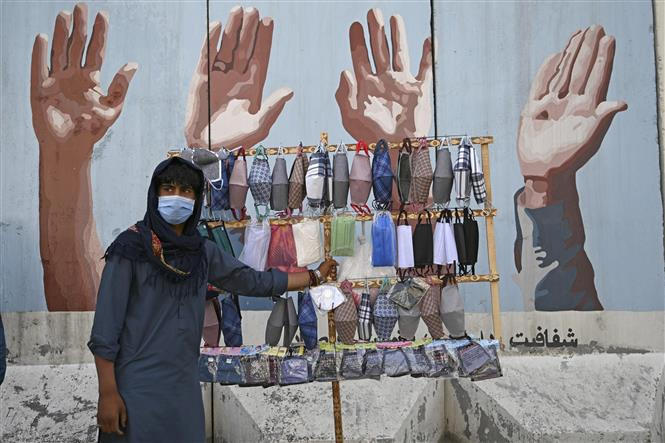 Một quầy hàng bán khẩu trang tại Kabul, Afghanistan. Ảnh: AFP/TTXVN