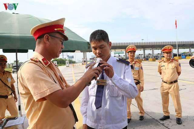 CSGT tiến hành kiểm tra nồng độ cồn.
