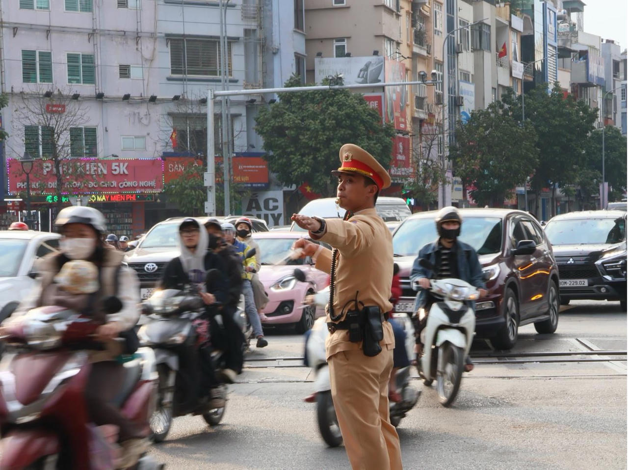 Lực lượng Cảnh sát giao thông (CSGT) Công an TP Hà Nội chủ động triển khai phương án, bố trí lực lượng trên mọi ngả đường, tăng cường phân luồng, điều tiết giao thông, bảo đảm quá trình đi lại an toàn, thông suốt cho người dân.