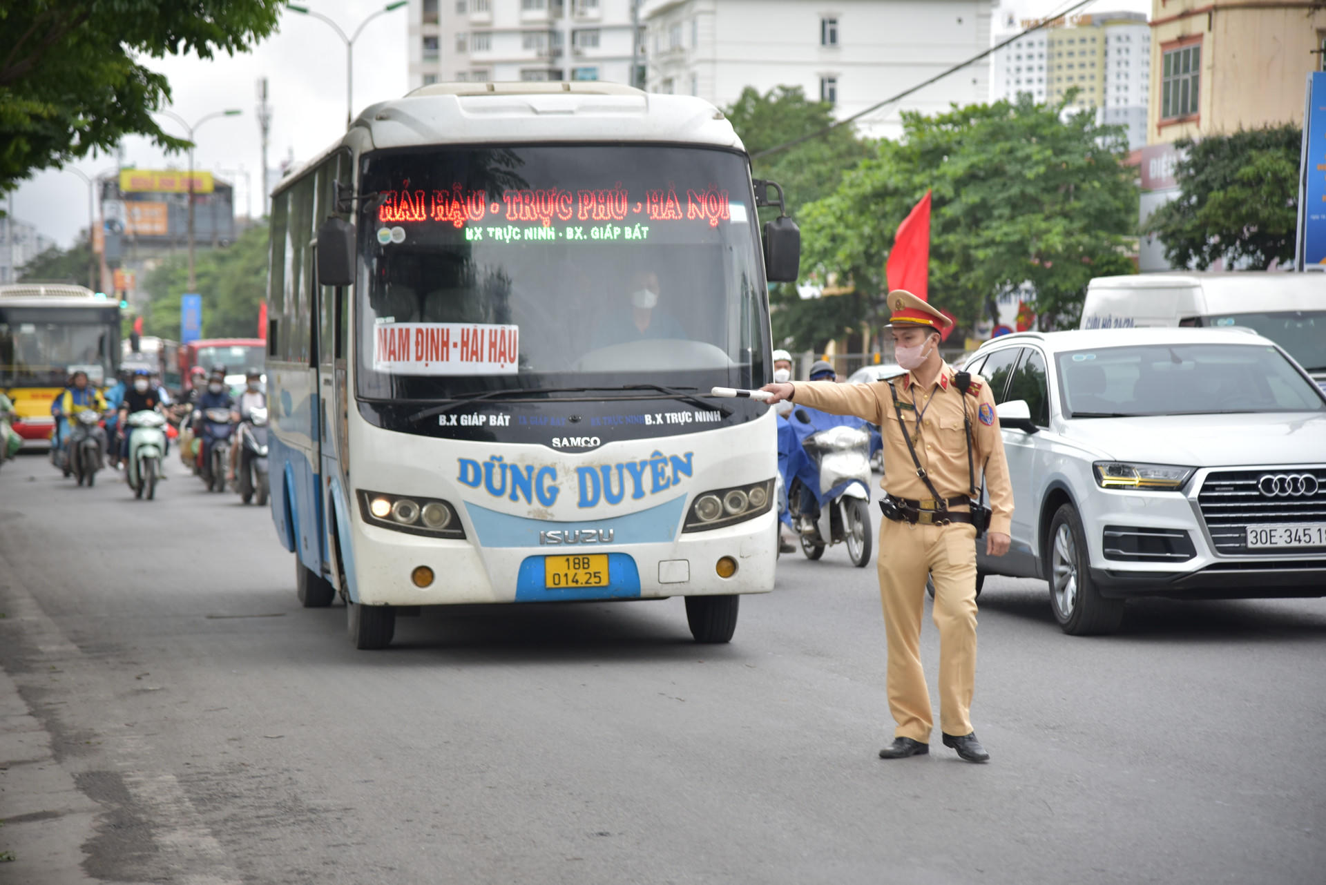 Ghi nhận dọc tuyến đường Giải Phóng và nút giao giữa đường Giải Phóng hướng vào cao tốc Pháp Vân cũng như quốc lộ 1A cũ hướng về các tỉnh phía Nam. Ngay từ những ngày bắt đầu kỳ nghỉ lễ (26-27/4) lực lượng CSGT đường bộ số 14 đã tăng cường tuần tra, tuyên truyền và xử lý các trường hợp vi phạm. Nhất là tình trạng xe khách dừng đỗ đón khách sai quy định.
