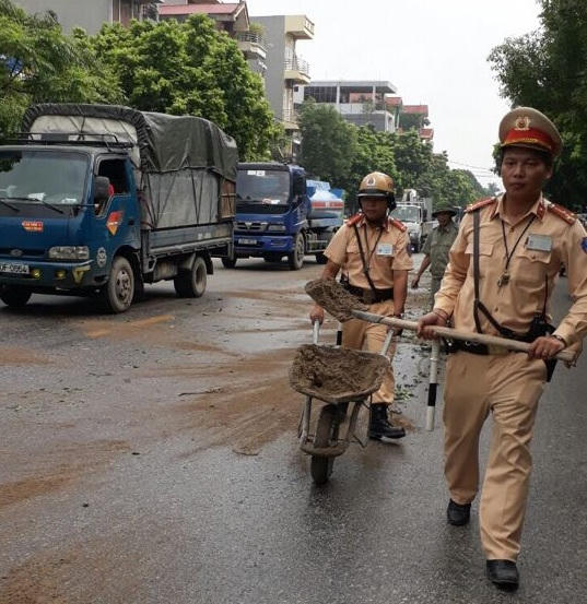Nhận được tin báo, tổ công tác Đội CSGT số 5 gồm Thượng uý Nguyễn Tiến Dũng, và Trung uý Vũ Xuân Khánh đã có mặt kịp thời xử lý.