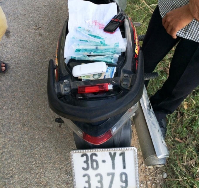 Tại thời điểm kiểm tra, người điều khiển không xuất trình được đăng ký xe, giấy phép lái xe. Qua quan sát thái độ hai thanh niên có biểu hiện nghi vấn bất thường, CSGT kiểm tra cốp xe thì phát hiện ma túy, kim tiêm, nước cất cùng nhiều tiền mặt.