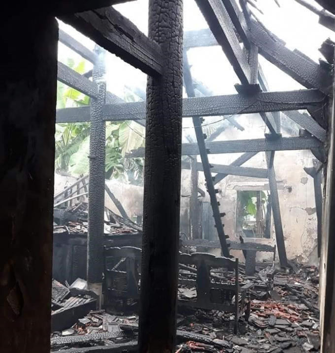 Chỉ trong chốc lát, ngọn lửa bùng cháy dữ dội thiêu rụi toàn bộ căn nhà, tài sản của vợ chồng bà Lý.