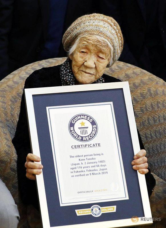 Năm 2019, cụ bà Tanaka được công nhận kỷ lục thế giới Guiness là người sống thọ nhất. Ảnh: Reuters.