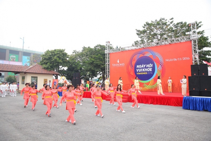 Sau khi Bà Dương Hồng Anh, Phó Tổng Giám đốc Công ty Cổ phần Kinh doanh và Quản lý bất động sản Vinhomes thay mặt Ban Tổ chức tuyên bố khai hội, sân khấu chính đã được dành cho phần thi biểu diễn dưỡng sinh và đây cũng là nội dung thi đấu đầu tiên trong “Ngày Hội vui khoẻ Vinhomes”. Trên nền nhạc du dương, các vận động viên, phần lớn thuộc thế hệ lớn tuổi nhất trong các gia đình đã trình diễn phần thi với những chuyển động nhịp nhàng, thư thái mà dẻo dai. Phần thi của những Cư dân cao tuổi Vinhomes đã khiến cho các vị khách cảm thấy rất thú vị.
