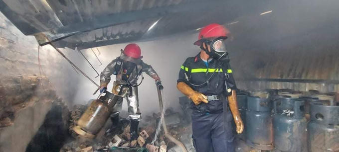 Cửa hàng chứa rất nhiều bình gas bốc cháy dữ dội