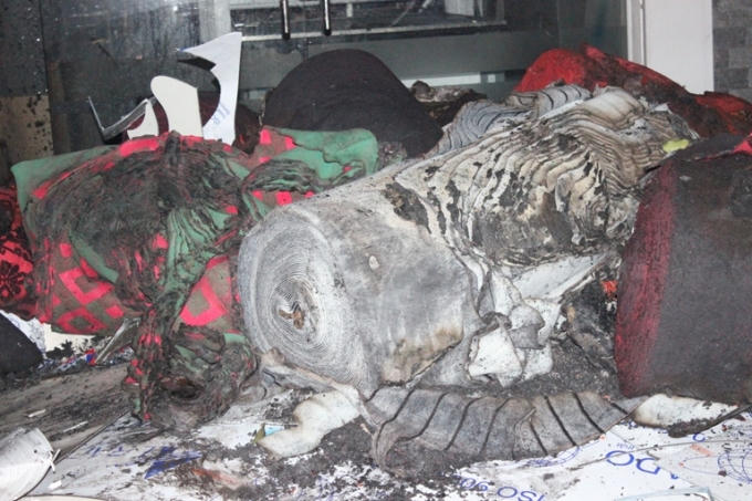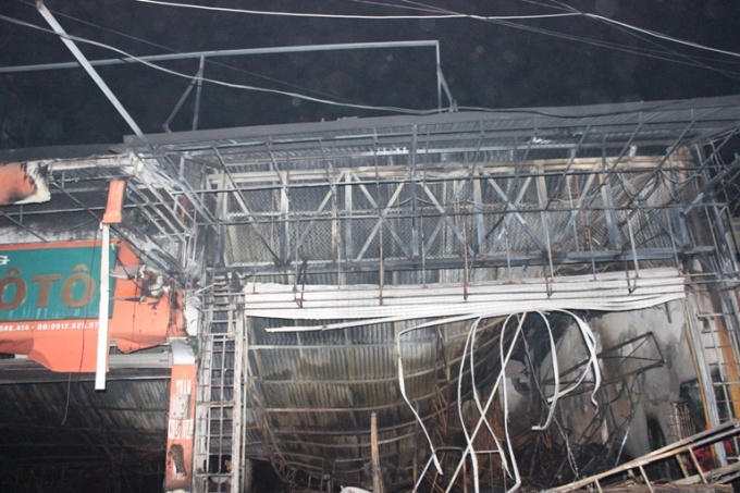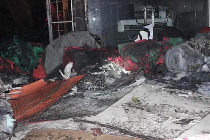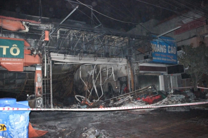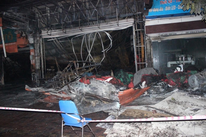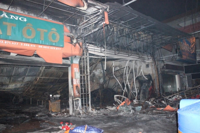Toàn bộ tài sản trong dãy nhà bán đồ nội thất đã bị thiêu rụi, trong đó có nhiều tài sản giá trị gồm một chiếc ô tô.