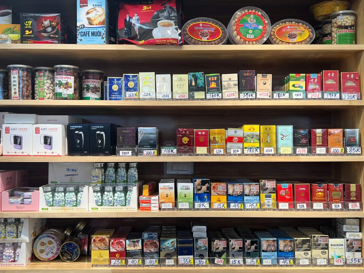 Không chỉ có các đồ ăn vặt, thực phẩm, đồ gia dụng...Cửa hàng Trung Quốc cũng bày bán các loại rượu, thuốc lá của Trung Quốc.