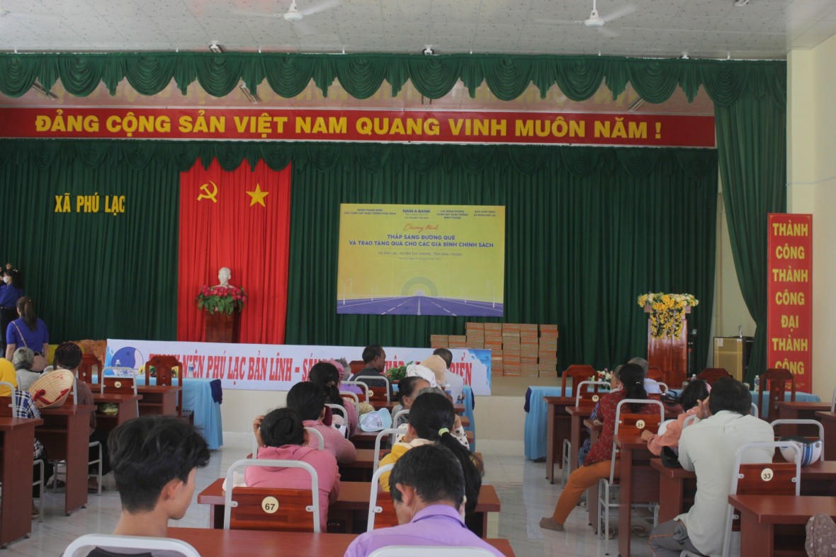 Vừa qua, tại xã Phú Lạc (huyện Tuy Phong, tỉnh Bình Thuận), Đoàn thanh niên Cục Cảnh sát giao thông (CSGT) phía Nam (Bộ Công an) đã phối hợp cùng Đoàn thanh niên Phòng CSGT Bình Thuận (Công an tỉnh Bình Thuận) và nhà hảo tâm đã tổ chức chương trình “Thắp sáng đường quê” và trao tặng quà cho các gia đình chính sách có hoàn cảnh khó khăn trên địa bàn xã Phú Lạc.