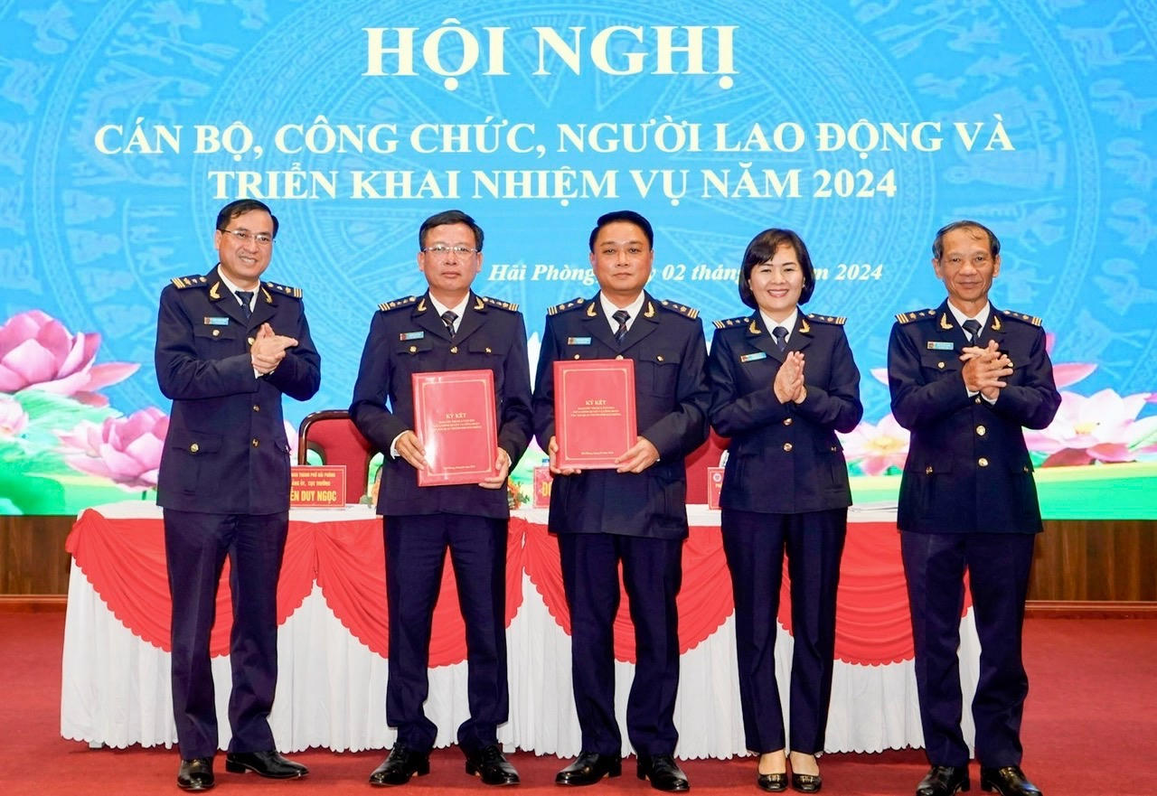 Tại Hội nghị, Cục Hải quan TP Hải Phòng đã phát động thi đua năm 2024 với chủ đề “Đẩy mạnh công tác phòng chống tham nhũng tiêu cực; tăng cường kỷ cương kỷ luật công vụ; tập trung nguồn lực thực hiện chuyển đổi số, cải cách hành chính, hiện đại hoá Hải quan, phấn đấu hoàn thành thắng lợi mọi nhiệm vụ đề ra”. Đồng thời thực hiện ký kết Giao ước thi đua giữa Cục trưởng và Chủ tịch công đoàn Cục Hải quan TP Hải Phòng. Bên cạnh đó, Hội nghị cũng đã thống nhất thông qua Nghị quyết Hội nghị cán bộ, công chức năm 2024.
