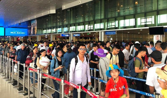 Khách xếp hàng dài trên các chuyến bay chiều của hãng Vietjet vào cao điểm hè. Ảnh: P.ĐIỀN