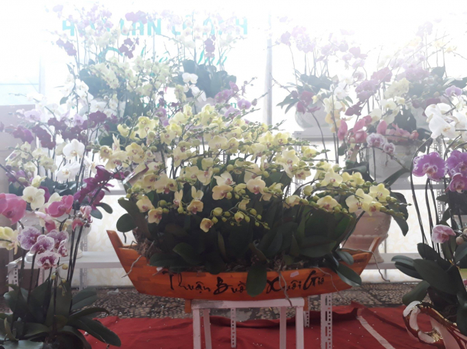 Tại Hội chợ Xuân Kỷ Hợi năm 2019, ngoài những loại hoa Tết truyền thống như mai, đào, đỗ quyên, nhiều nhà vườn còn sáng tạo ghép các cành lan hồ điệp trên gỗ lũa, trên chậu hình thuyền, hình trái tim vô cùng độc đáo. Có những chậu lan khổng lồ được ghép bởi cả trăm cành hoa lan, giá lên tới hơn 30 triệu đồng.