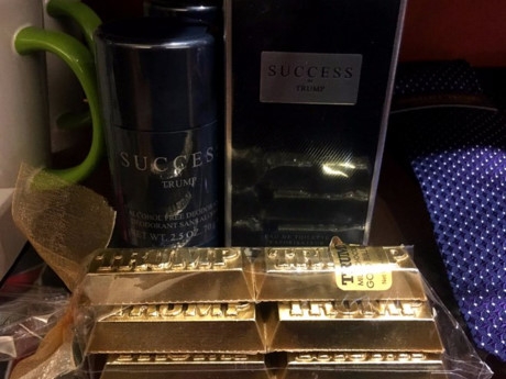 Hiện cái tên Donald Trump đang ngày càng chứng tỏ là một “thỏi nam châm” thu hút sự chú ý của dư luận. Những món đồ gán mác tên Trump được trưng bày trong tòa nhà.