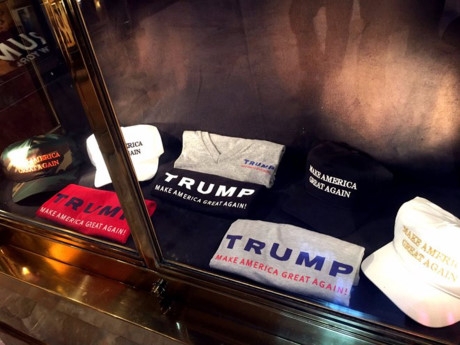 Rất nhiều sản phẩm in tên ông Donald Trump được bày bán trong tòa nhà như áo và mũ.