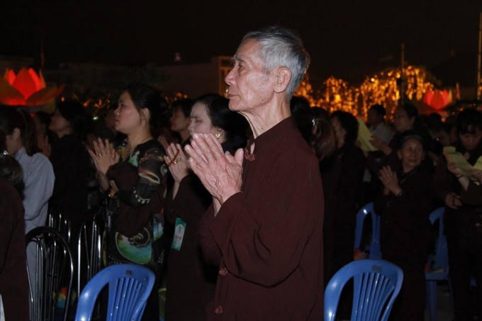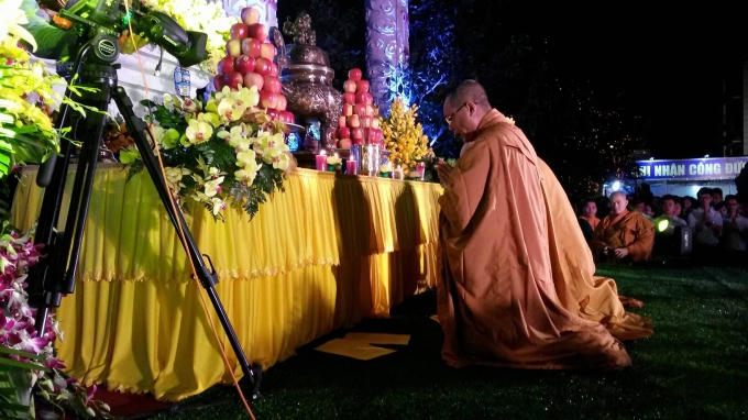 Trong thời khắc Hòa thượng Thích Quảng Tùng làm chủ lễ, toàn thể tăng ni phật tử và nhân dân cùng thắp nến, chắp tay, cầu nguyện cho quốc thái, dân an, thế giới hòa bình.
