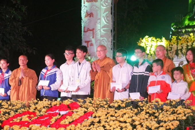 Đặc biệt, Ban tổ chức đã trao 10 phần quà là học bổng toàn phần suốt quá trình học tập để khích lệ tinh thần các cháu học sinh. Đây cũng là việc làm thực hành ý nguyện cứu khổ ban vui của Nhà Phật và để chào đón sự quang lâm của tôn tượng Phật Ngọc. Ngài là hiện thân của từ bi, của yêu thương, của sẻ chia và giác ngộ, dưới ánh hào quang trí tuệ, từ bi của Đức Phật: