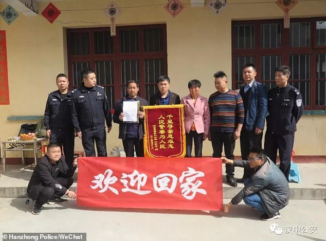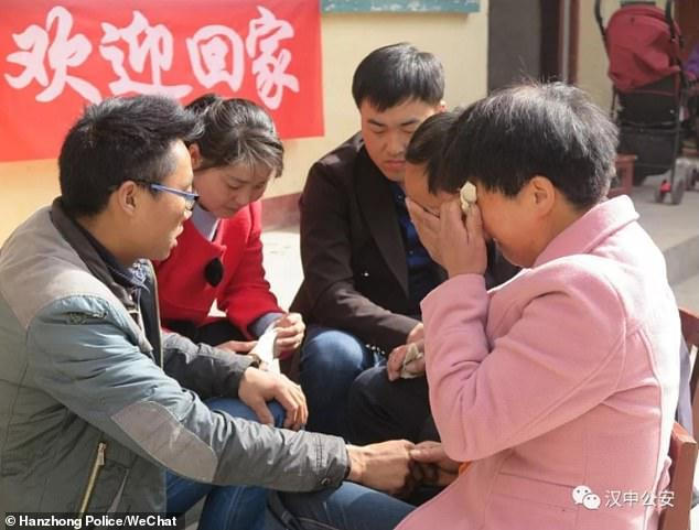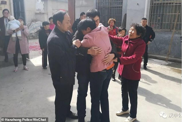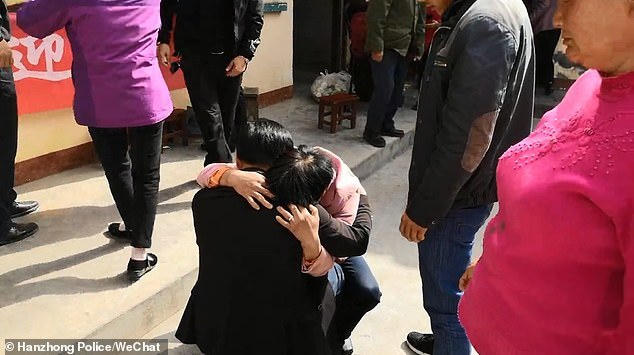 Những hình ảnh mà cảnh sát địa phương ghi lại cho thấy anh Zhang chạy tới ôm thật chặt mẹ mình. Cả ba oà khóc trong hạnh phúc.