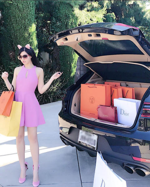 Trên Instagram của Tiểu Giang tràn ngập hình ảnh cô tiểu thư xinh đẹp diện những bộ đồ hàng hiệu giá hàng ngàn đô la, xách những chiếc túi của LV, Hermes...